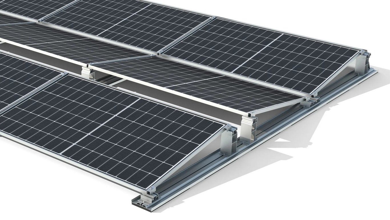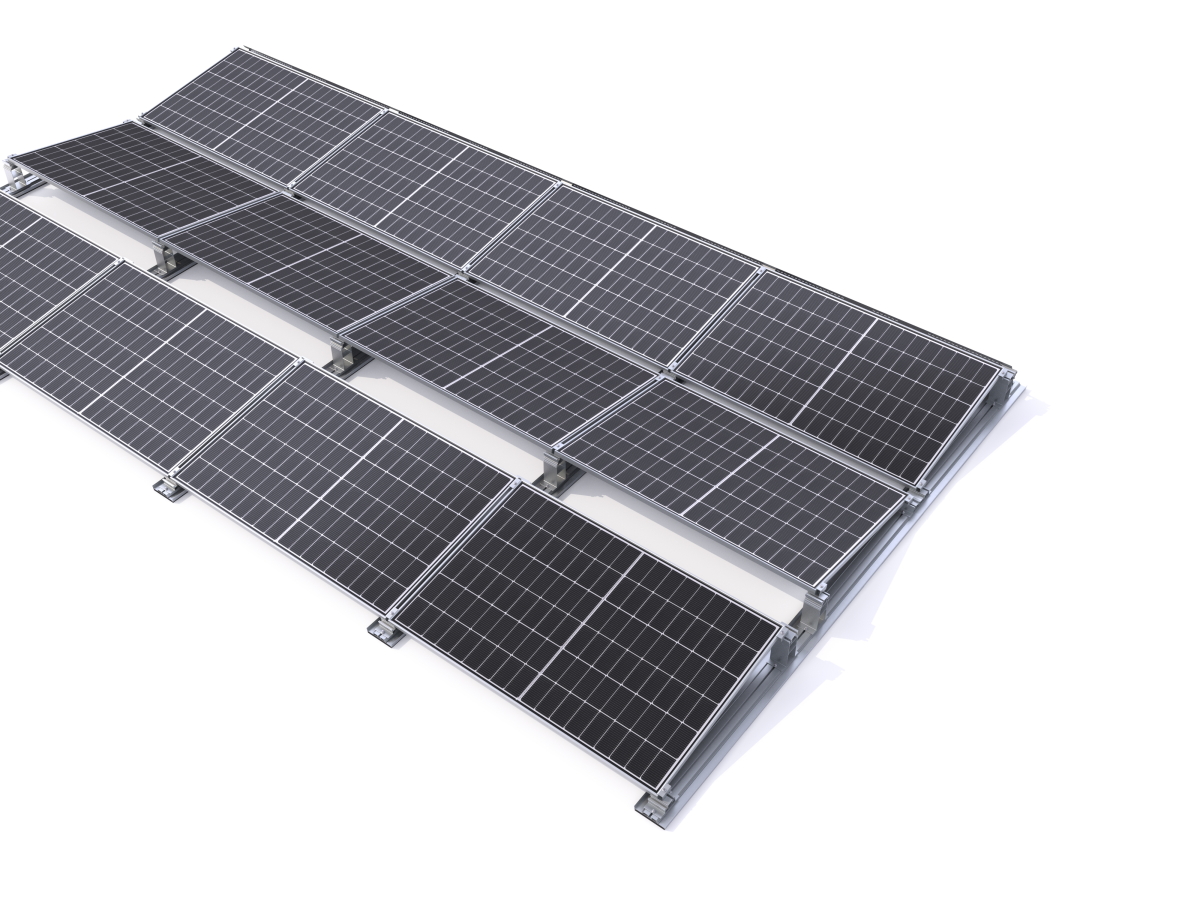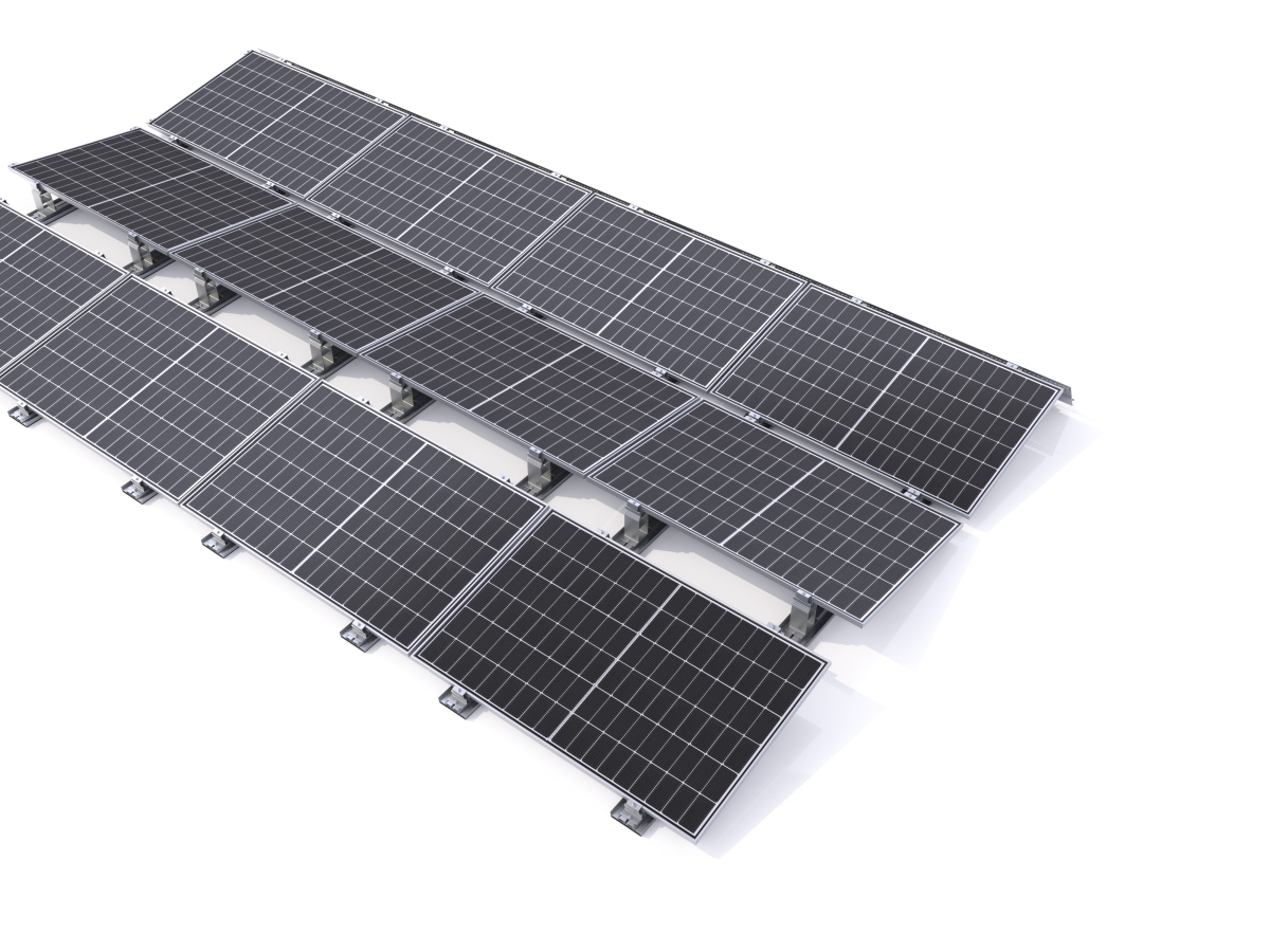 More flexibility for large modules: The further development of our aerodynamic flat roof mounting system is ideal for up to 3 m² in size. Aerodynamically optimised, permanently secure - completely without roof penetration.