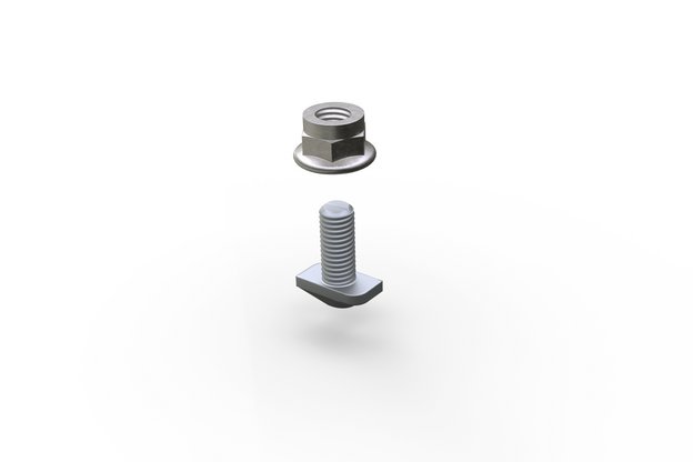 Hammerhead screws that automatically thread into the groove channel are pre-assembled on the supports. The hammer head rotates into the correct position when the screws are tightened. Advantage: less assembly time, fewer components, stable connections.