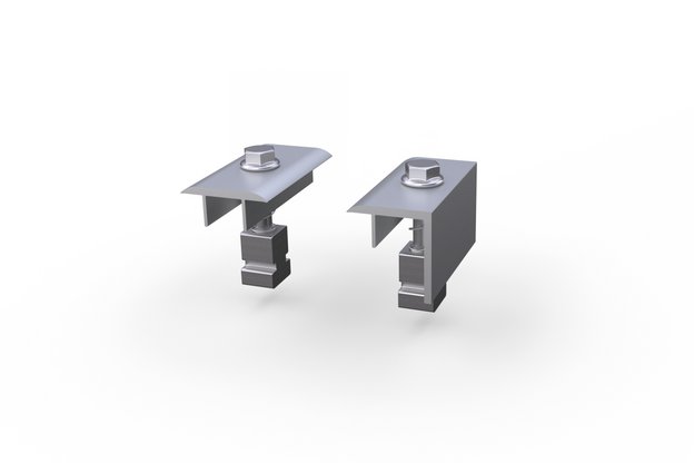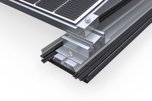 Fixing the solar modules at the corners. Advantage: quick, simple and material-optimised installation. With large modules, there is an increased risk of the modules bending and not being able to withstand wind or snow loads. Corner clamping is therefore ideal for small modules and simple conditions.